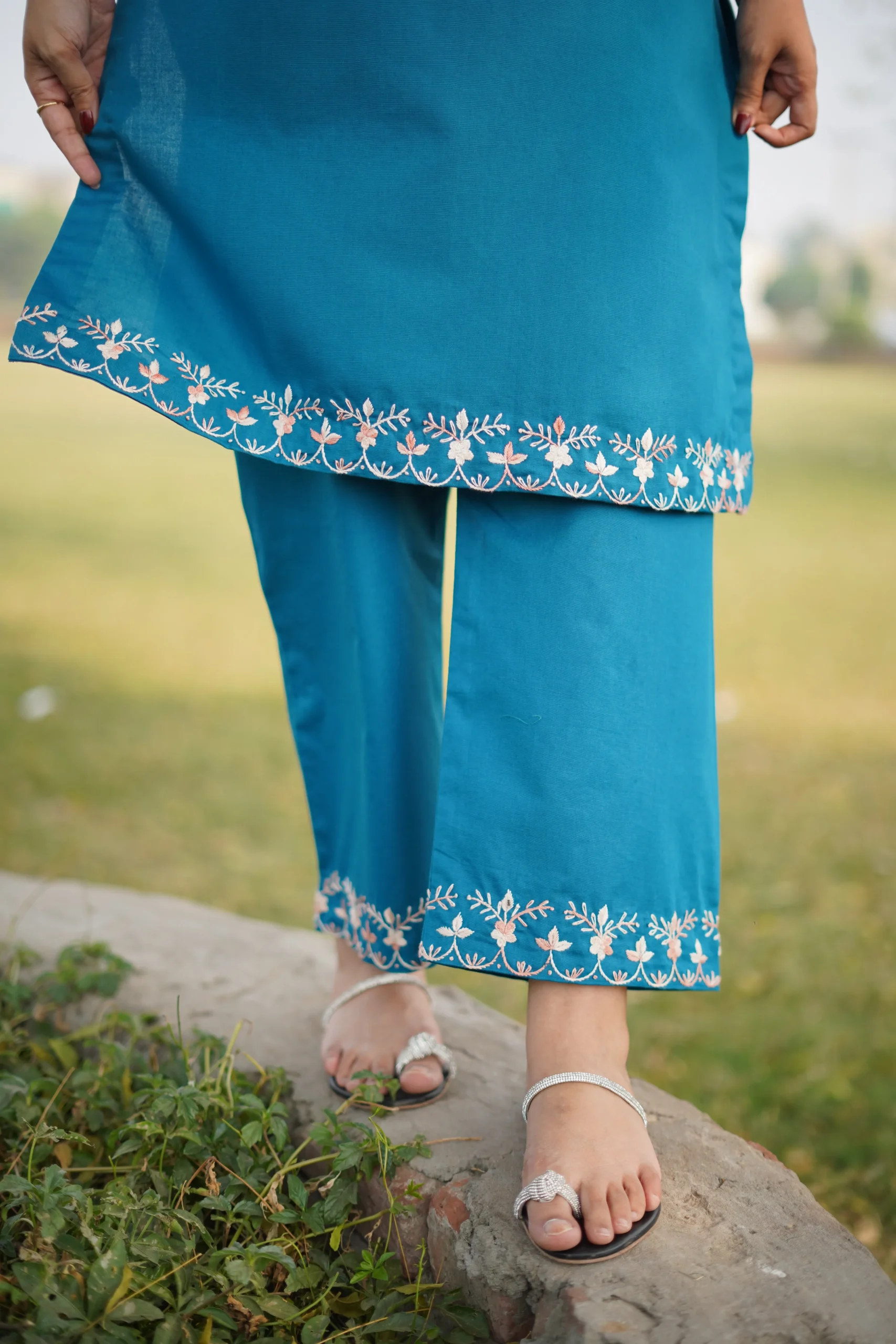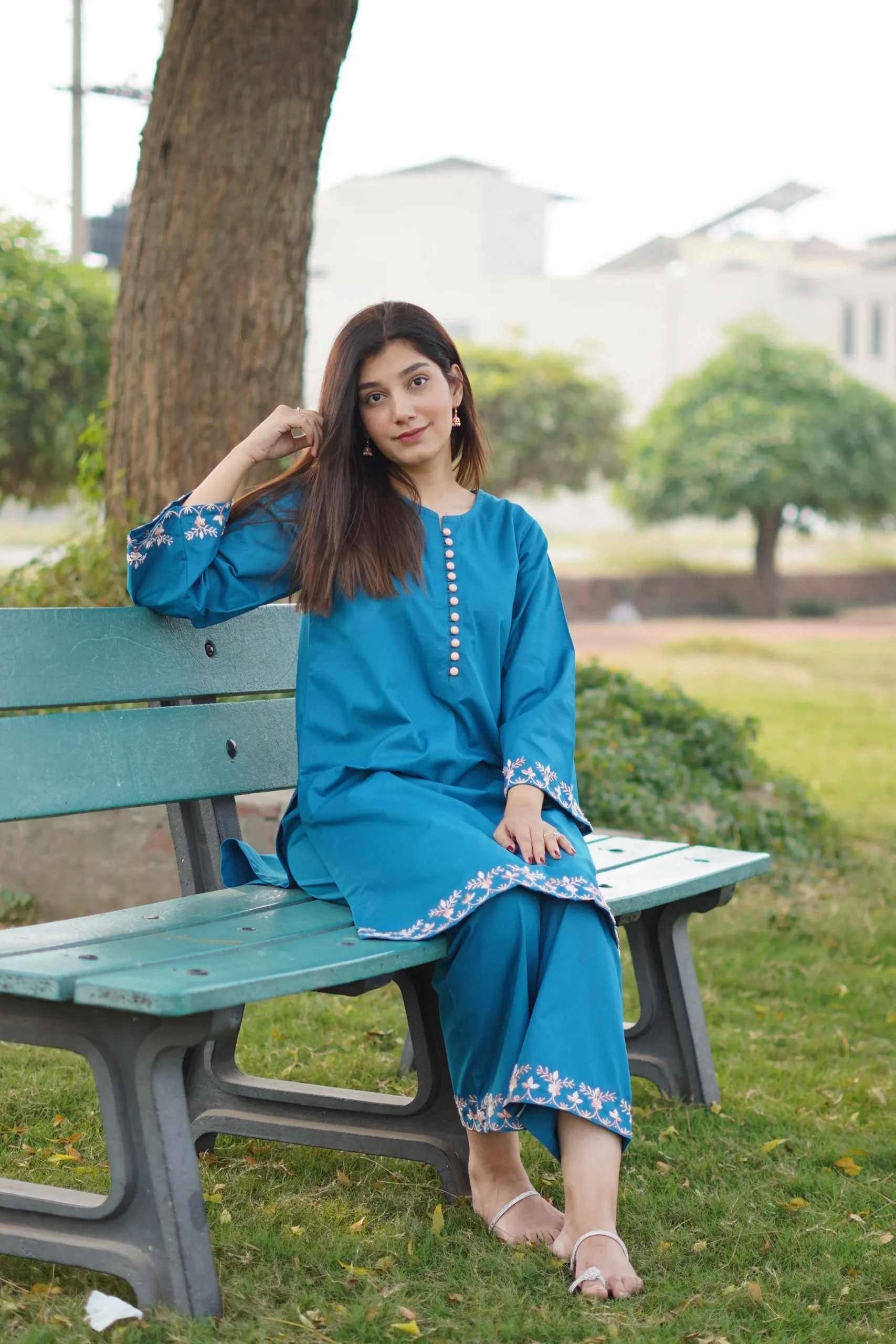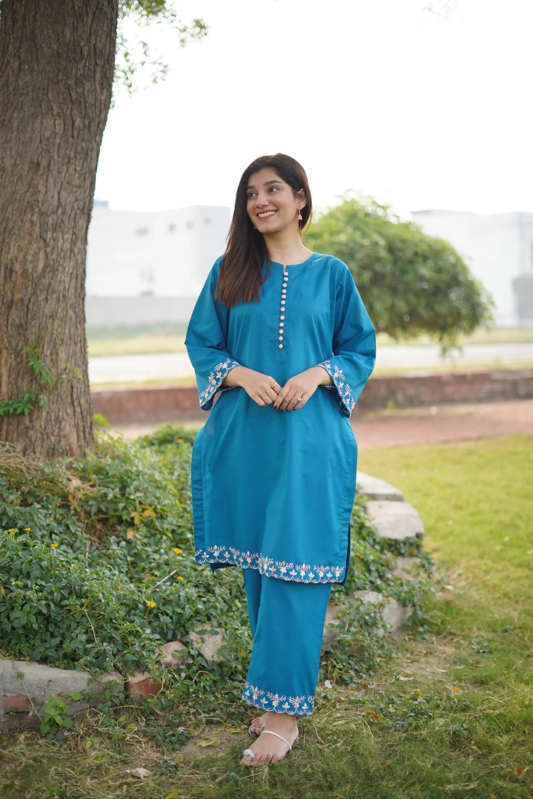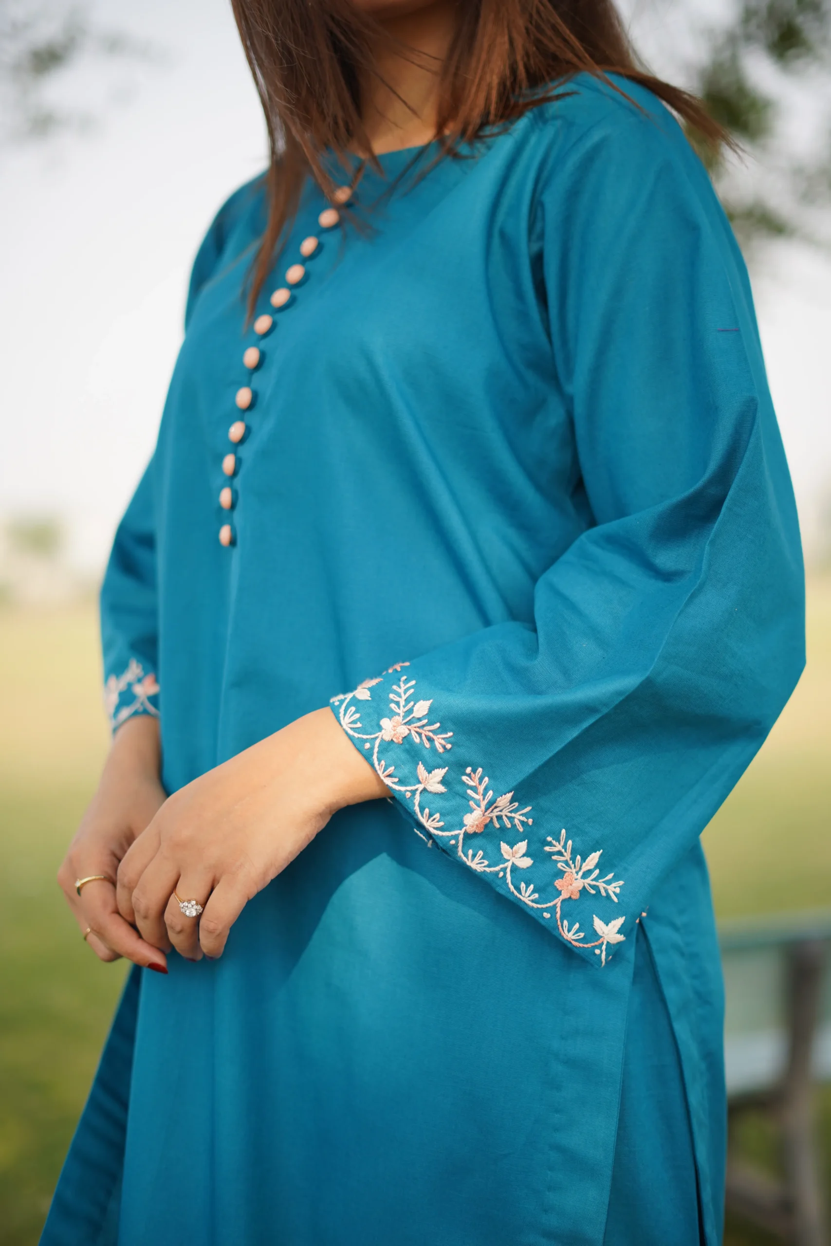 Embroidery: Hand Embroidery on sleeves and hem Trouser Style: Straight Pants Trouser and Hand Embroidery on border